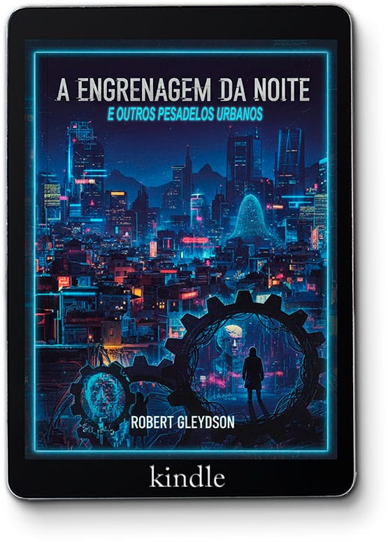 Em “A Engrenagem da Noite e Outros Pesadelos Urbanos”, a incursão de Robert Gleydson no horror se afasta do sobrenatural para explorar um abismo ainda mais próximo e perturbador: o da própria condição humana em um futuro que “já chegou, e ele é mais sujo do que se esperava”. O protagonista desta obra continua sendo a cidade do Rio de Janeiro, mas aqui ela se despe de seus fantasmas e vampiros para vestir uma nova pele, a de uma metrópole onde “a tecnologia é uma benção e uma maldição”. Neste Rio, os “monstros não têm presas ou asas” ; eles são algoritmos que controlam destinos, conspirações silenciosas e a verdade que se torna uma “miragem distorcida pela realidade virtual”. O horror não emana mais de túmulos antigos, mas do brilho frio de uma tela, da brutalidade calculada de um drone em órbita ou da crise existencial de um homem que descobre que sua vida é apenas uma linha de código em uma simulação complexa . A cidade é uma engrenagem implacável que tritura a alma, seja no caos da guerra urbana nas favelas , nos campos de batalha da Segunda Guerra , ou no vácuo indiferente do espaço sideral.